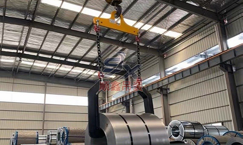 翻轉(zhuǎn)吊具通過機(jī)械剪力原理,對(duì)立式擺放的卷鋼進(jìn)行單邊抓取,來完成卷鋼的裝卸,當(dāng)改變重力點(diǎn)時(shí),可以對(duì)卷鋼進(jìn)行翻轉(zhuǎn),作業(yè)時(shí)不傷鋼卷。其吊耳采用加厚處理,焊縫飽滿牢固、延長使用壽命。